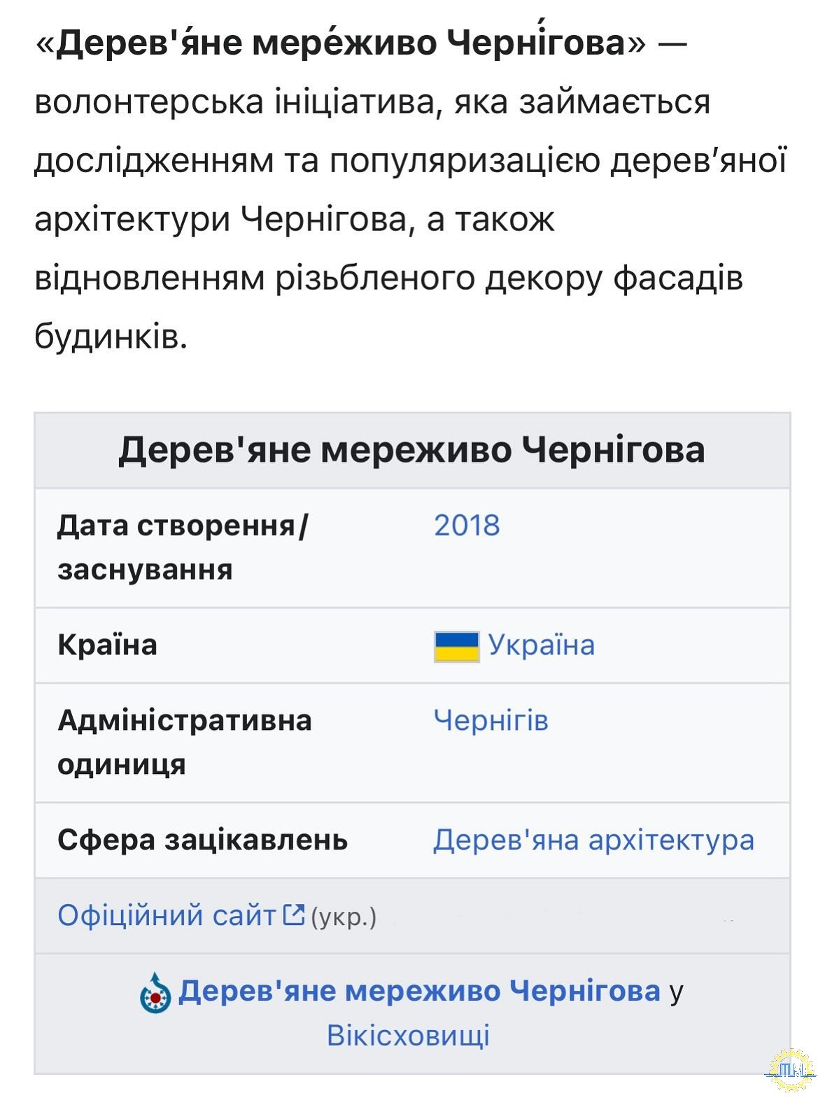 Завдяки Дерев'яне мереживо Чернігова і Бойку Сергію Васильовичу наша кафедра потрапила до Вікіпедії!