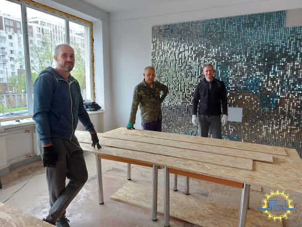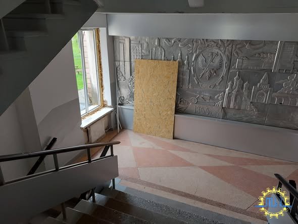 Сьогодні співробітники університету продовжили закривати побиті вікна.